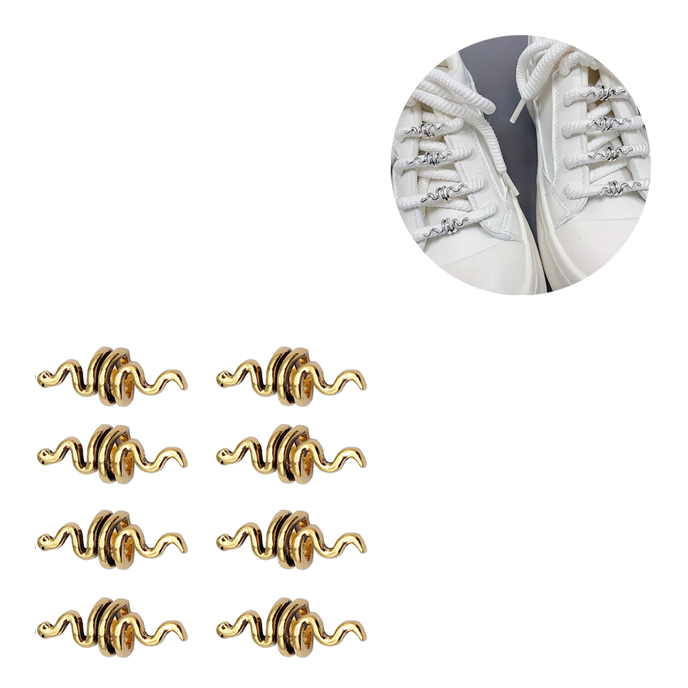 (8er Set) Metall Schuh Charms Accessoire Sneakers / Boots Beads für Schnürsekel Schlangen - Gold