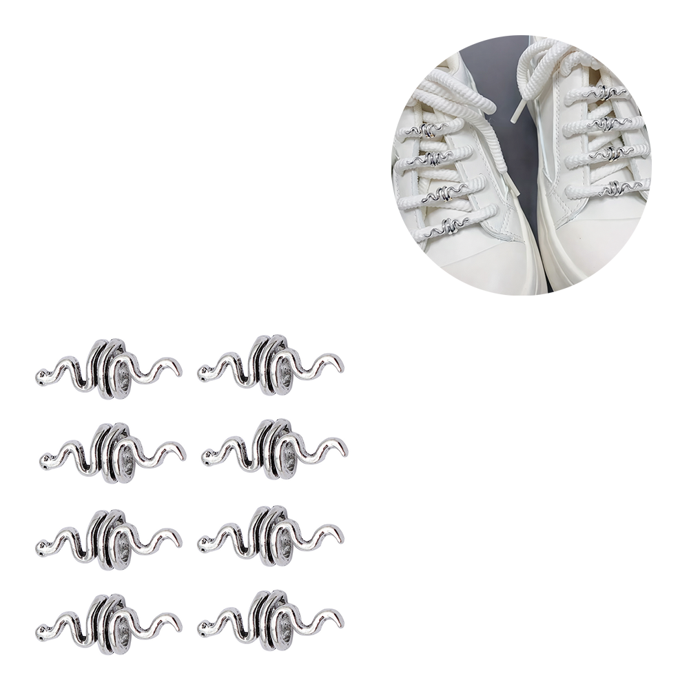 (8er Set) Metall Schuh Charms Accessoire Sneakers / Boots Beads für Schnürsekel Schlangen - Silber
