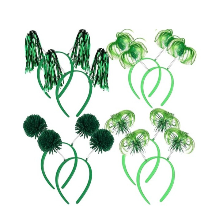 (8er Set) Wackel Pom Pom Haarreif Fasnachts Kostüm Zubehör Motto Party Accessoire Silvester Foto Requisite - Grün