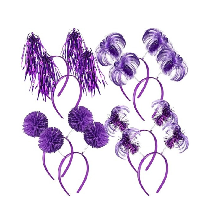 (8er Set) Wackel Pom Pom Haarreif Fasnachts Kostüm Zubehör Motto Party Accessoire Silvester Foto Requisite - Violett