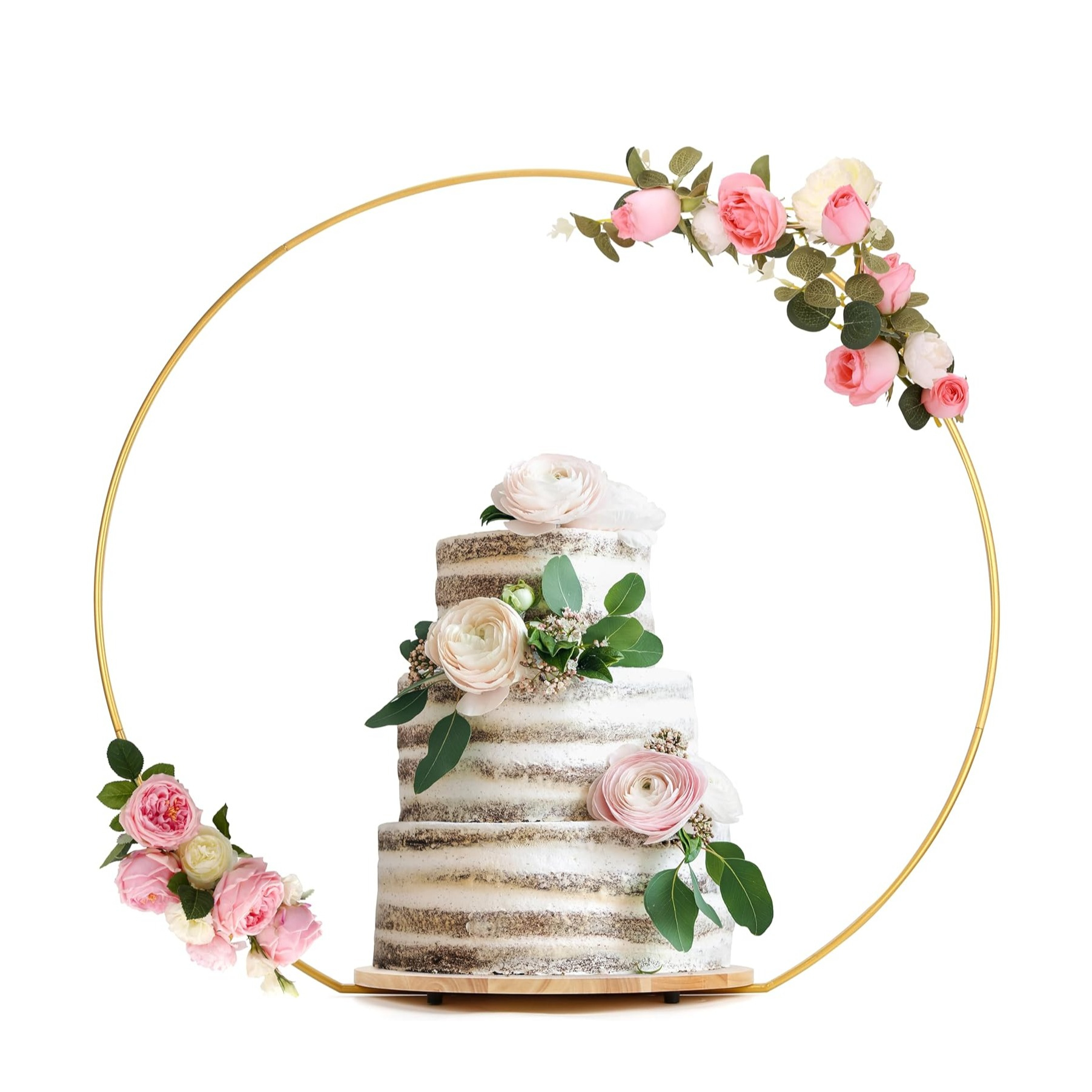 (Ø90cm) Metall Torten Bogen Deko Rahmen Party Kuchen Ständer mit Holz Basis Platte für Mehrstöckige Hochzeitstorte - Gold