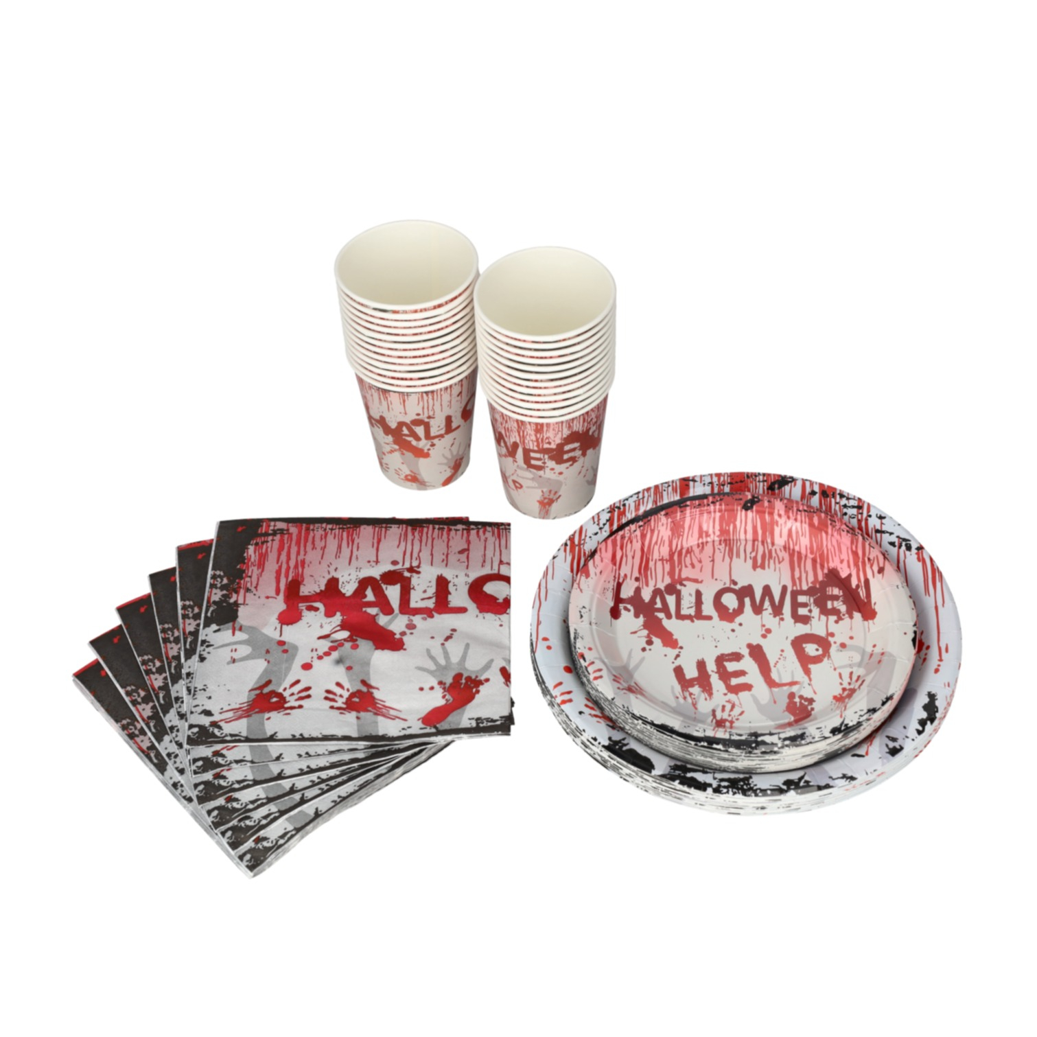 (92-tlg. Set) Einweg Geschirr Halloween Party Tisch Deko inkl. Teller / Servietten / Papp Becher - Help