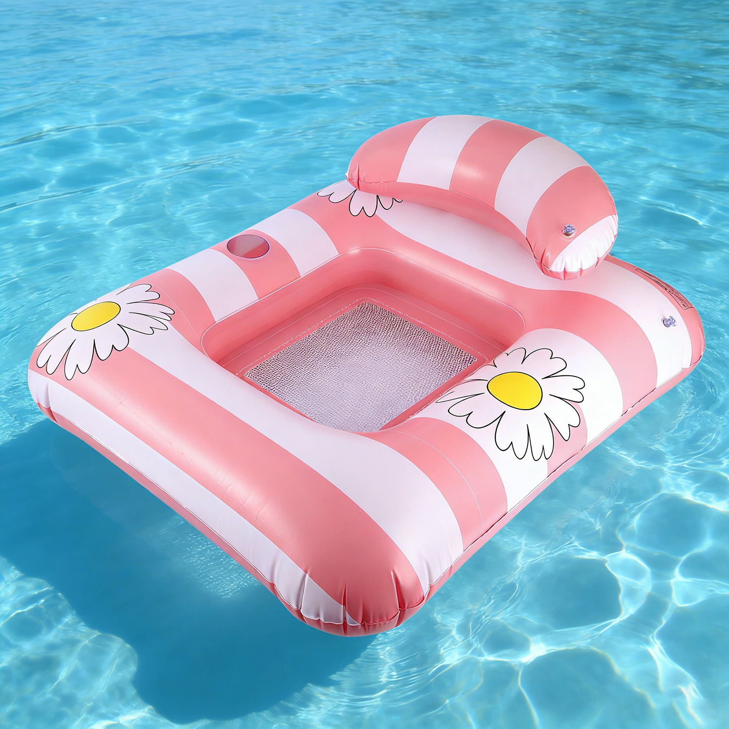 (95x85cm) Aufblasbare Wasser Luftmatratze Wasserhängematte Gänseblümchen Badeinsel mit Netz - Rosa / Weiss