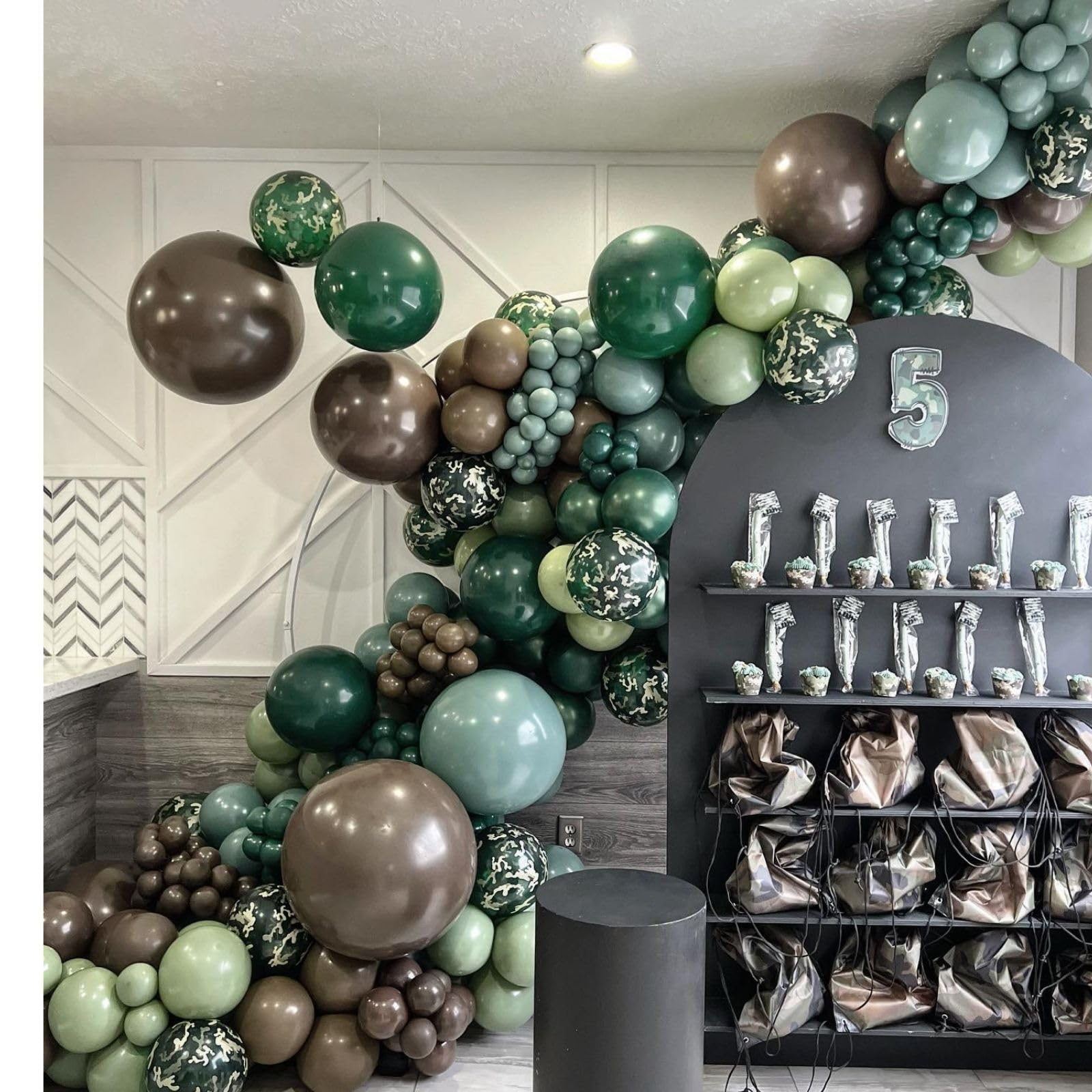 Dieses Camouflage Ballon Set ist die perfekte Wahl für besondere Partys und Mottodekorationen. Mit insgesamt 97 Latex Luftballons in den Farben Grün, Braun und Schwarz lässt sich im Handumdrehen eine aufregende Deko im Army- oder Abenteuer Stil gestalten.