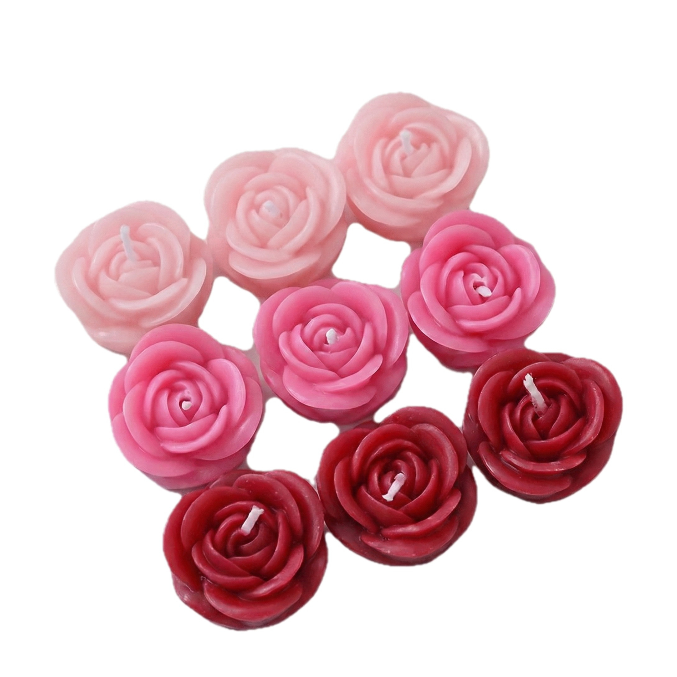 (9er Set) 4cm Rosen Duft Kerze Aromatherapie Home Deko Wachs Teelicht - Rot / Pink