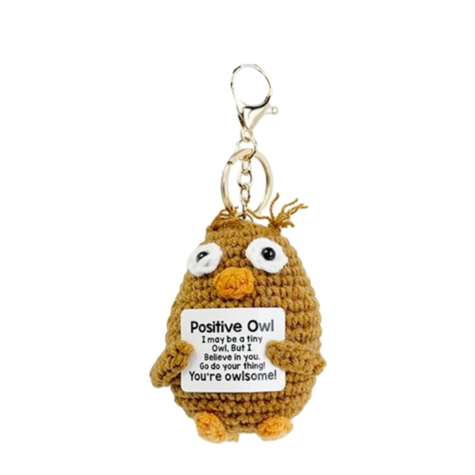 (9x6cm) Positive Owl Gehäkelter Schlüsselanhänger Mini Glücksbringer Plüschtier Eule Anhänger Geschenkidee - Braun