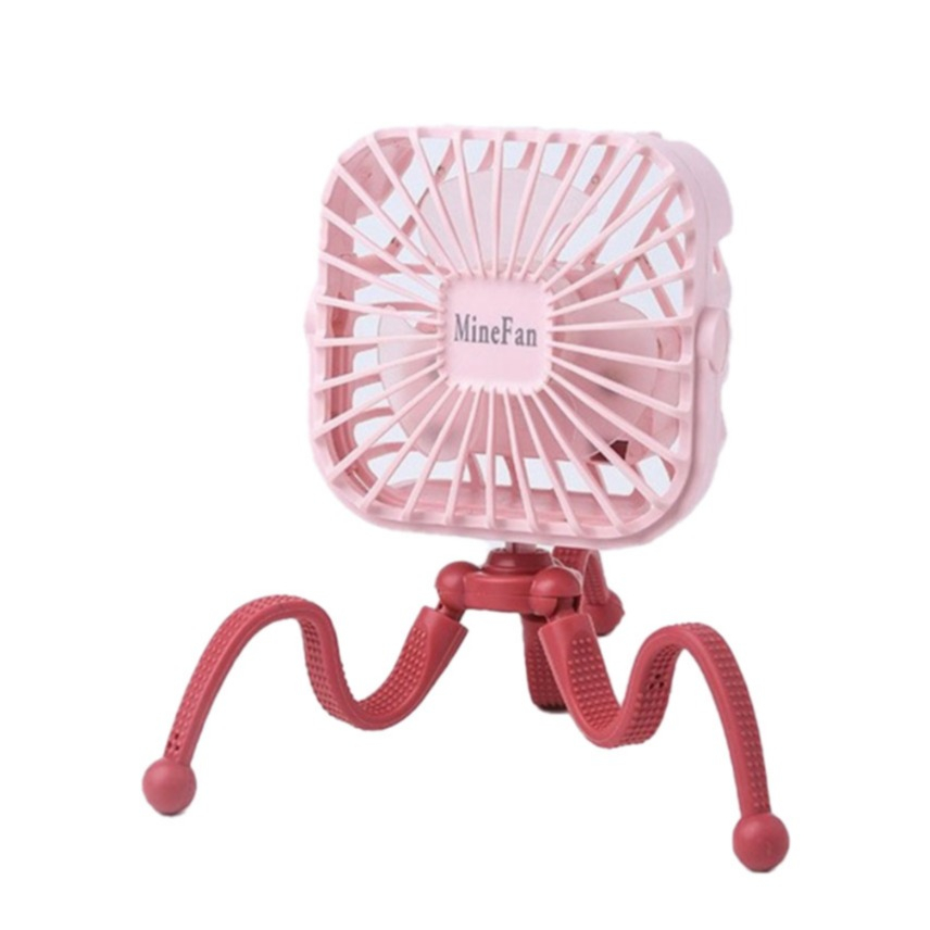(9x9cm) USB Ventilator LED Lüfter Wiederaufladbar 500mAh + Octopus Tripod Standfuss - Rosa
