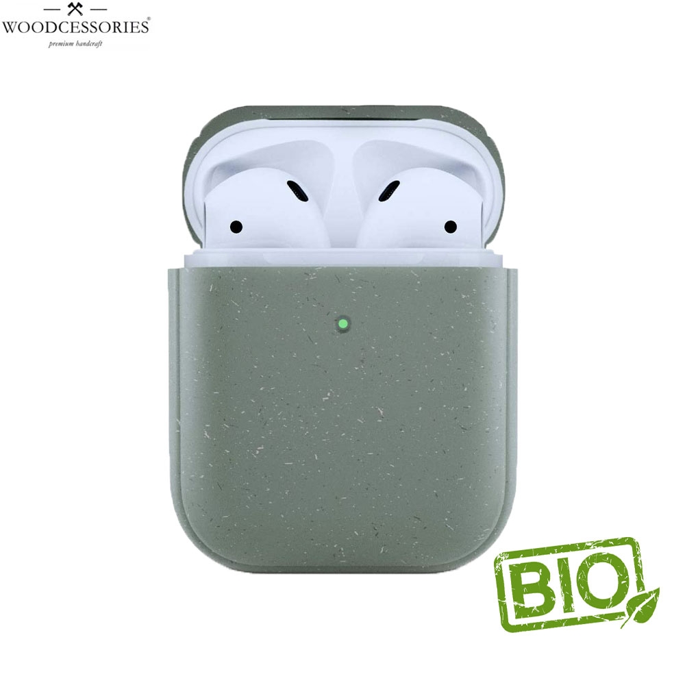 1 x Woodcessories - AirPods (1. & 2. Generation) BioCase Antimikrobielle Schutzhülle Vegan Biologisch Abbaubar (ECO349) - Midnight Green