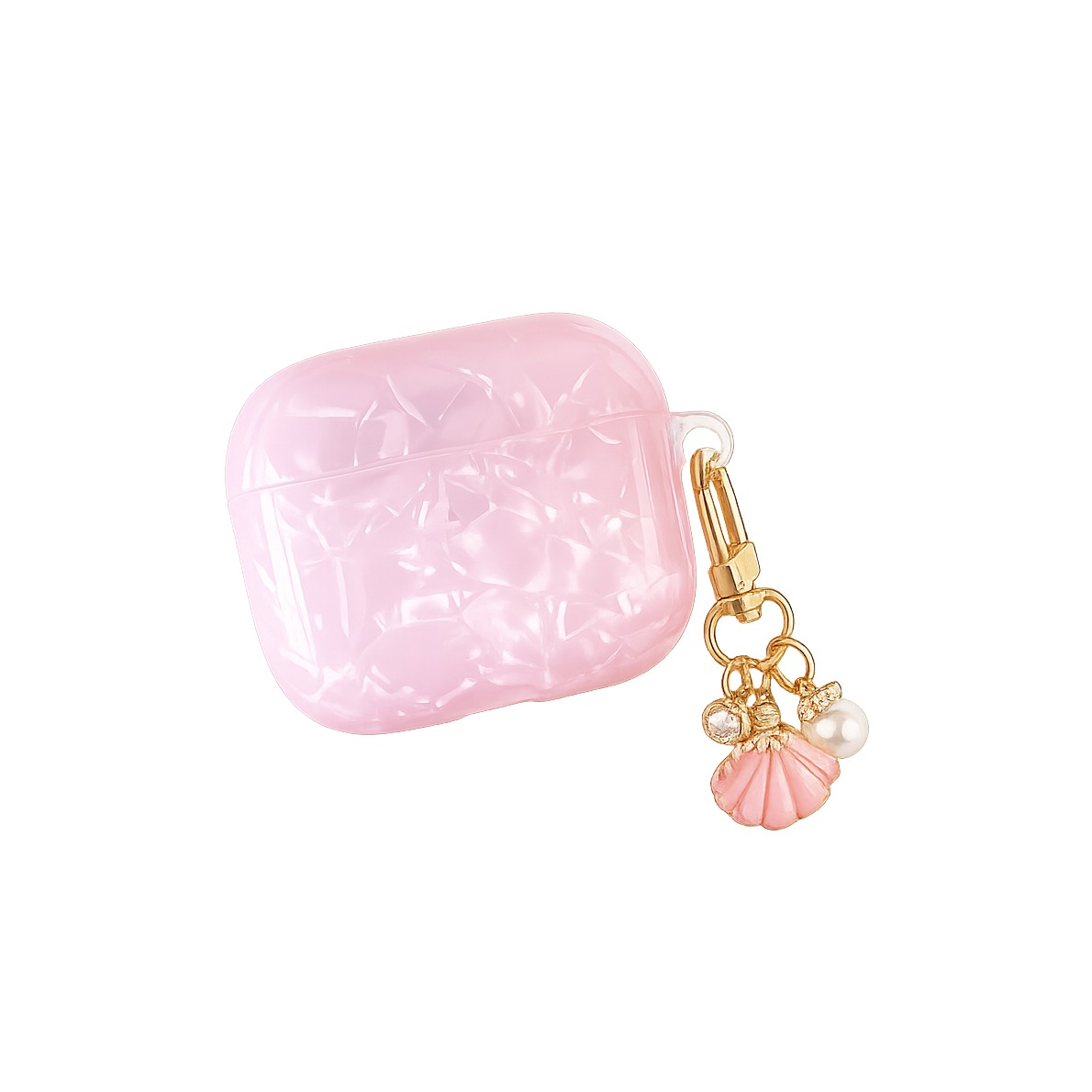 AirPods Pro 3 Gummi Case Schutzhülle mit Muschel Anhänger - Rosa (Perlmutt)