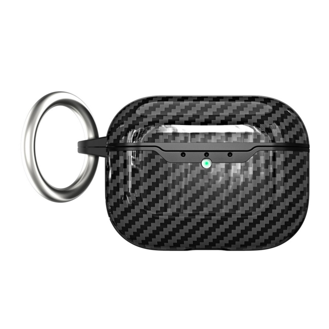 AirPods Pro 3 Gummi Schutzhülle Abdeckung mit Karabinerhaken Carbon Look - Schwarz