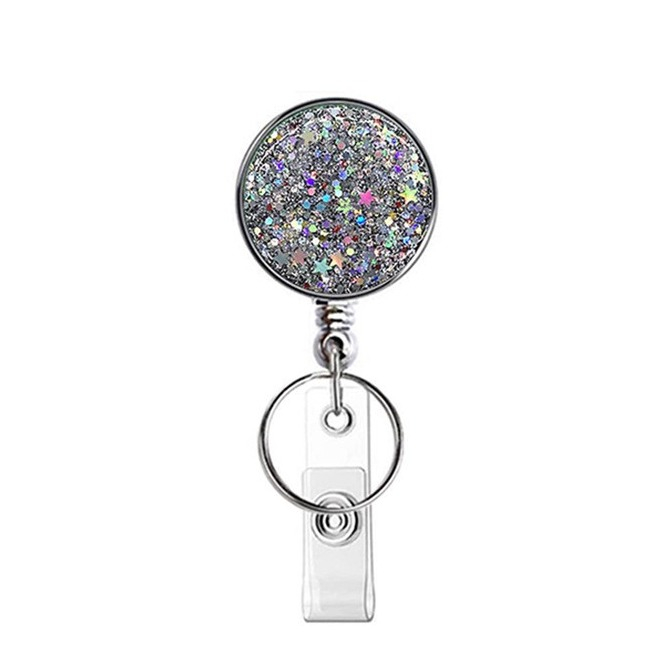 Anti-Lost Glitzer Key-Bak Schlüsselanhänger mit Gürtelclip + Kartenhalter - Silber