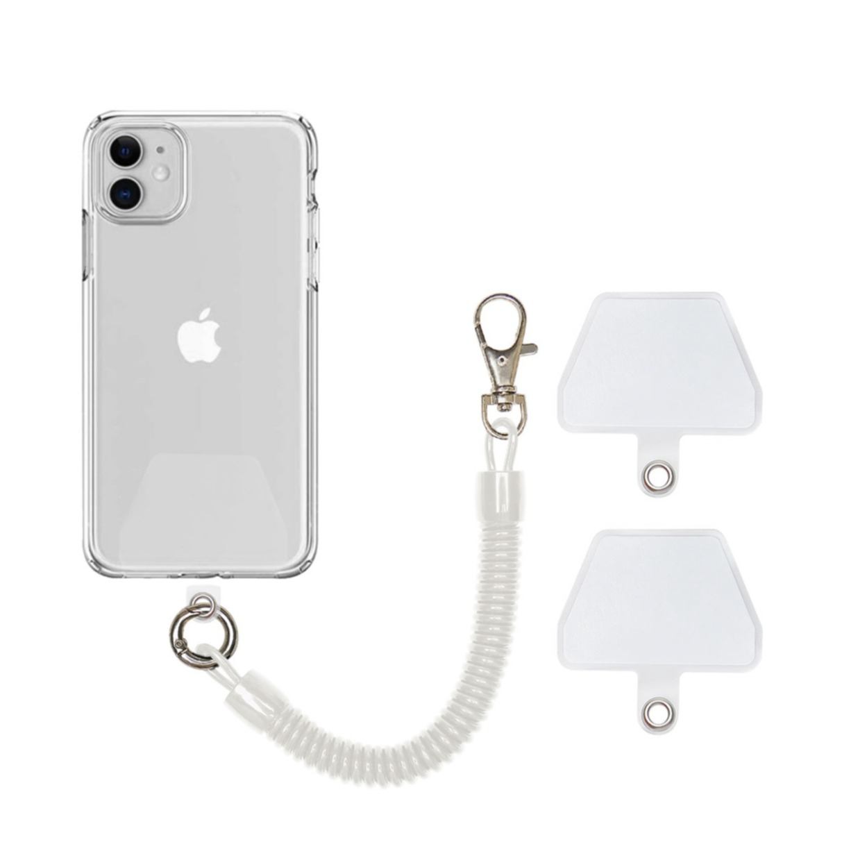 (20-90cm) Anti-Diebstahlschutz Universal Spiralkabel Handykette + 2x Selbstklebende Einlagen - Transparent