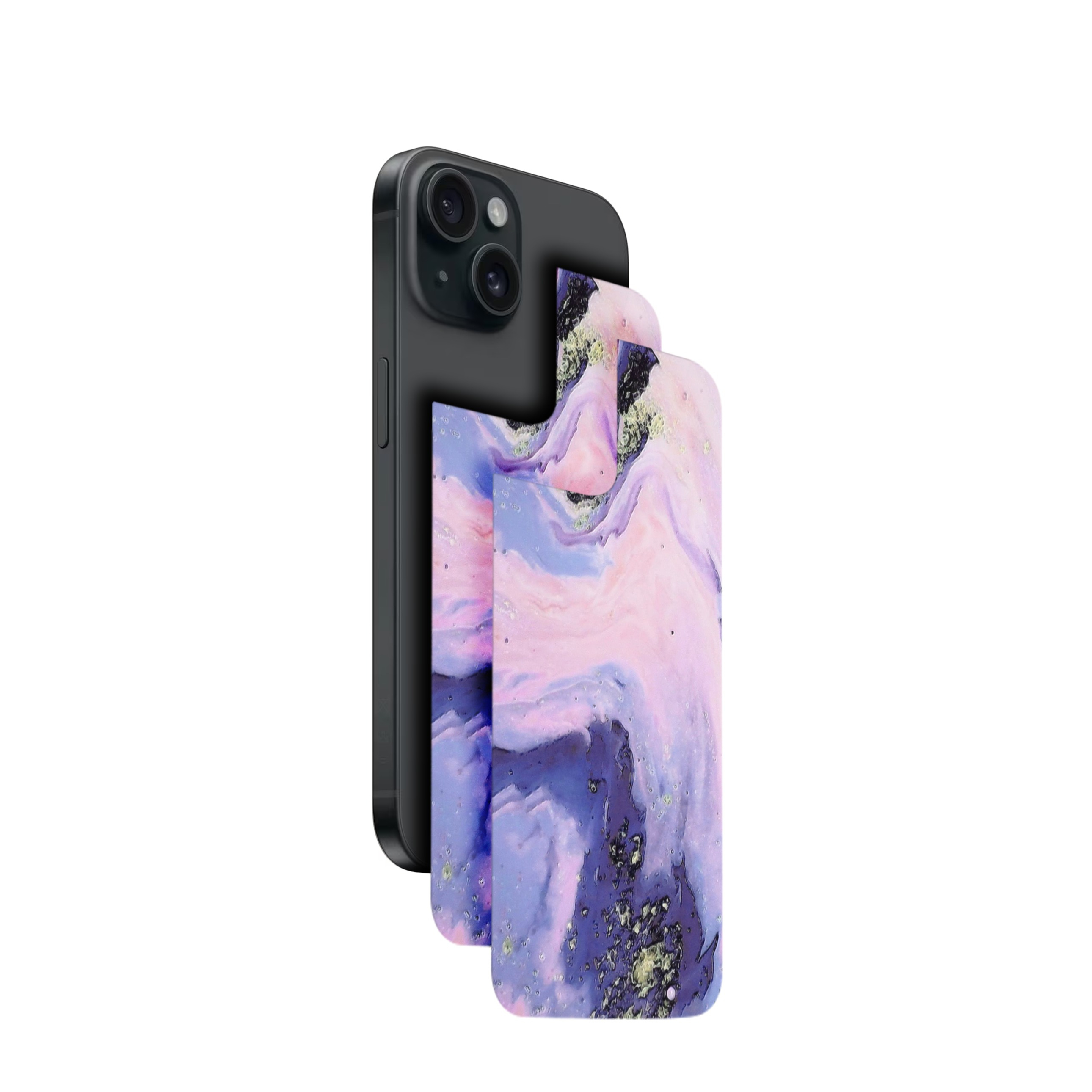 (2er Set) iPhone 15 Plus Backcover Schutzfolie Swiss Made - Blueberry Marble