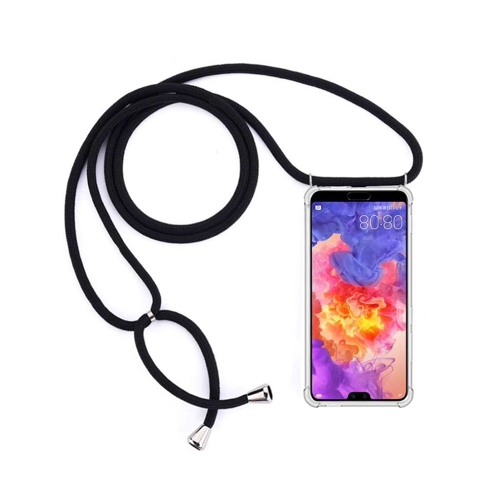 1 x Apfelkiste - Huawei P30 Necklace Gummi Hülle Air Cushion Fallschutz + Handykette - Transparent / Schwarz