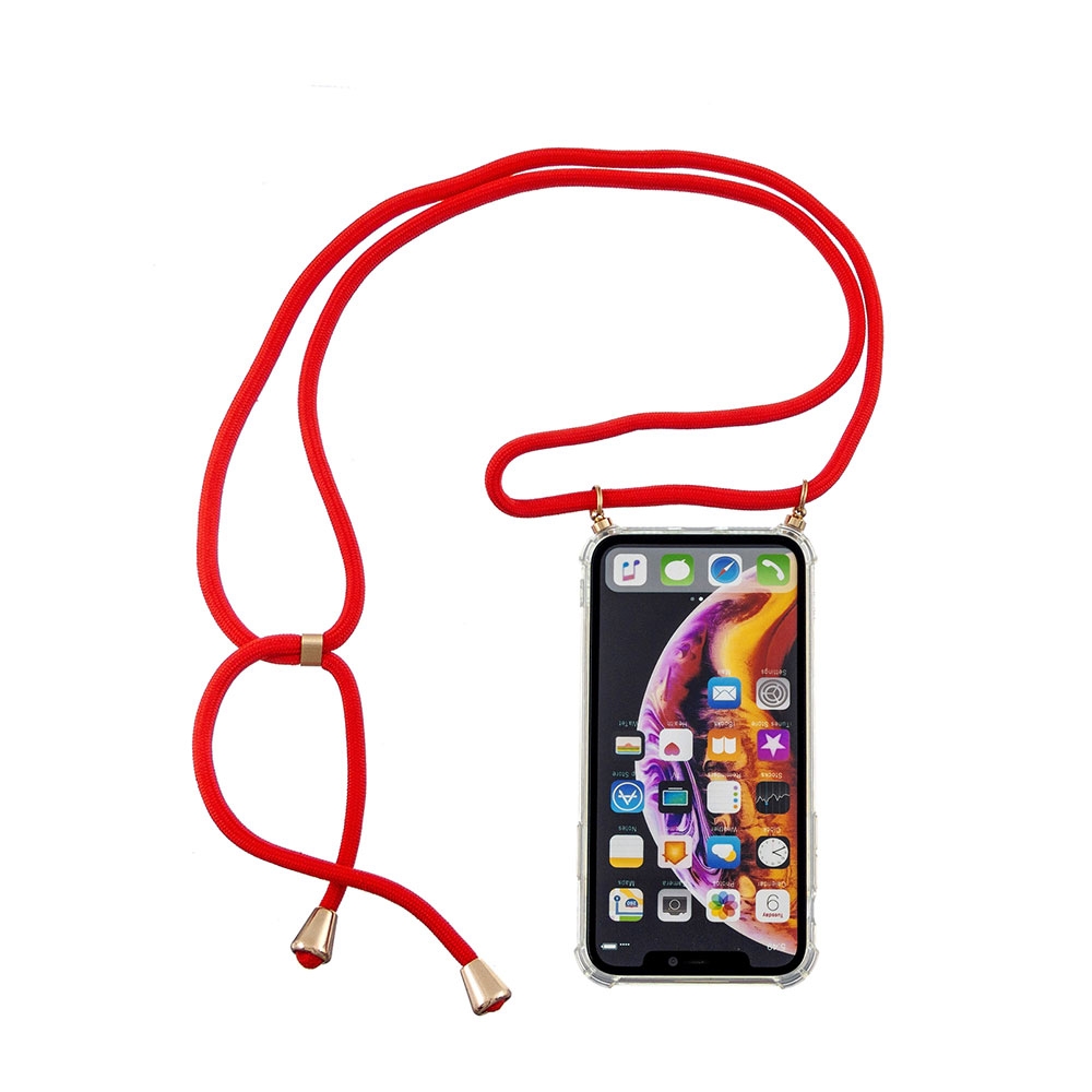 iPhone Xr Necklace Gummi Hülle Air Cushion Fallschutz + Handykette (150cm) - Rot / Gold