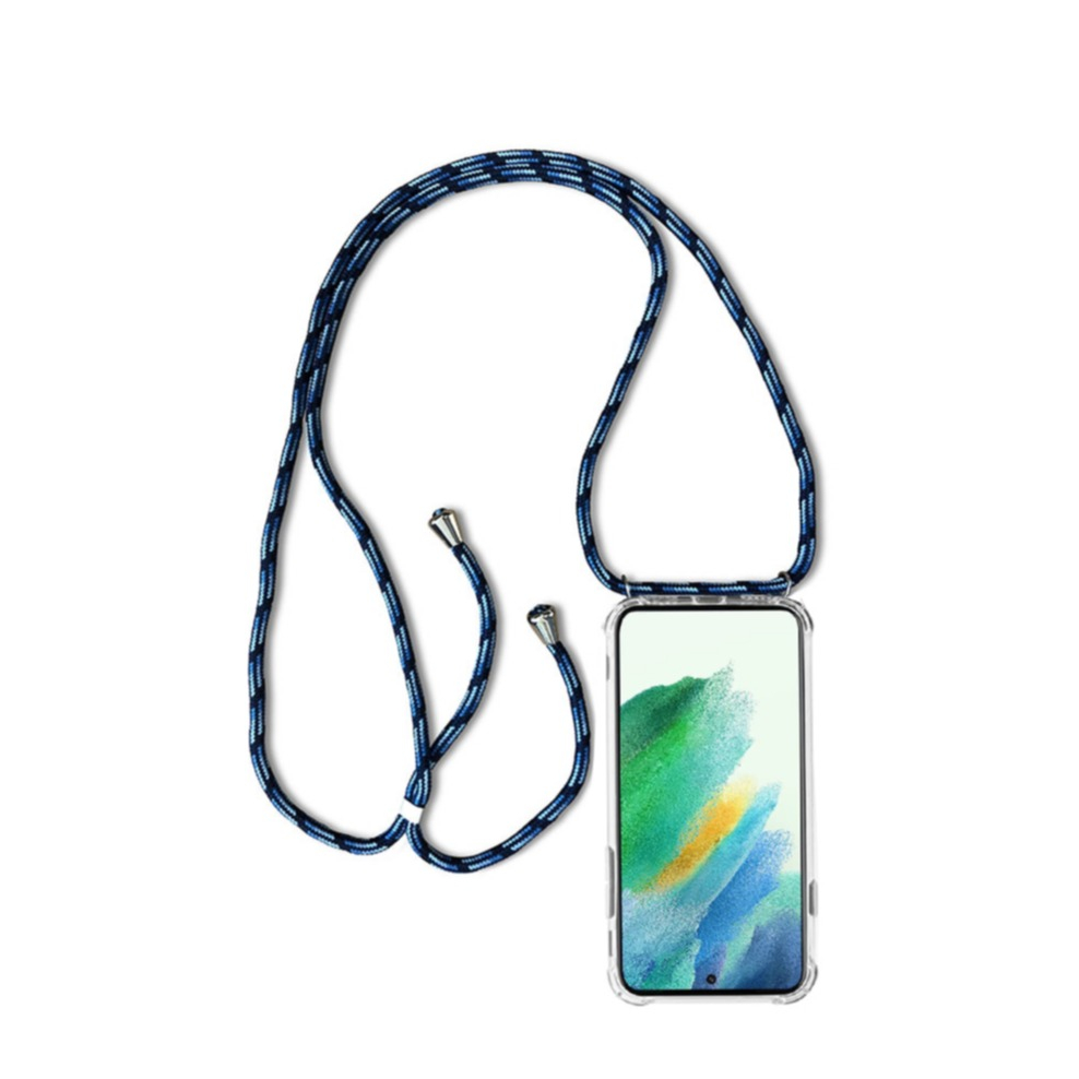 Samsung Galaxy S21 FE 5G Necklace Gummi Hülle Air Cushion Fallschutz + Handykette (150cm) - Blau / Silber