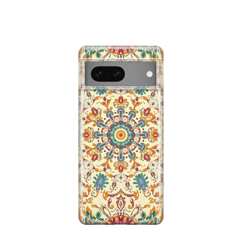 Google Pixel 7 Gummi Hülle Majolika-Blütenkranz - Blau / Gelb / Rot