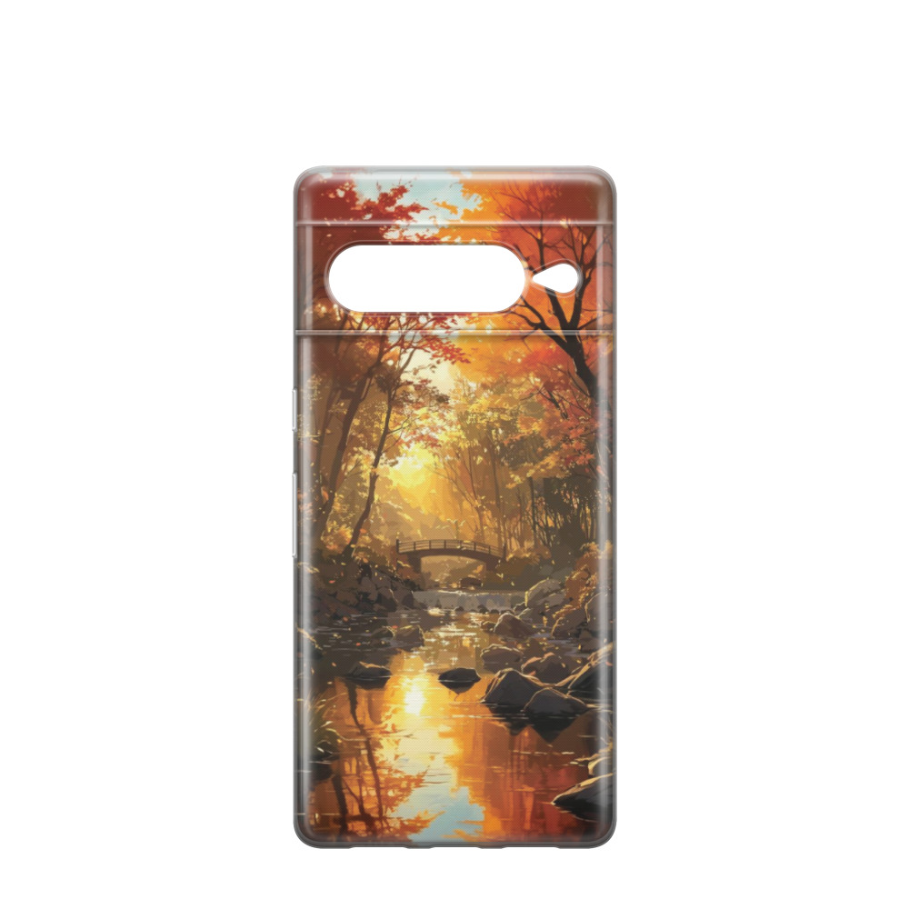Google Pixel 7 Pro Gummi Hülle Goldener Herbstmorgen - Orange