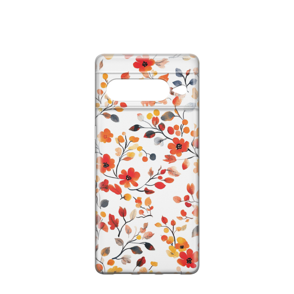 Google Pixel 7 Pro Gummi Hülle Herbstblüten 01 - Orange