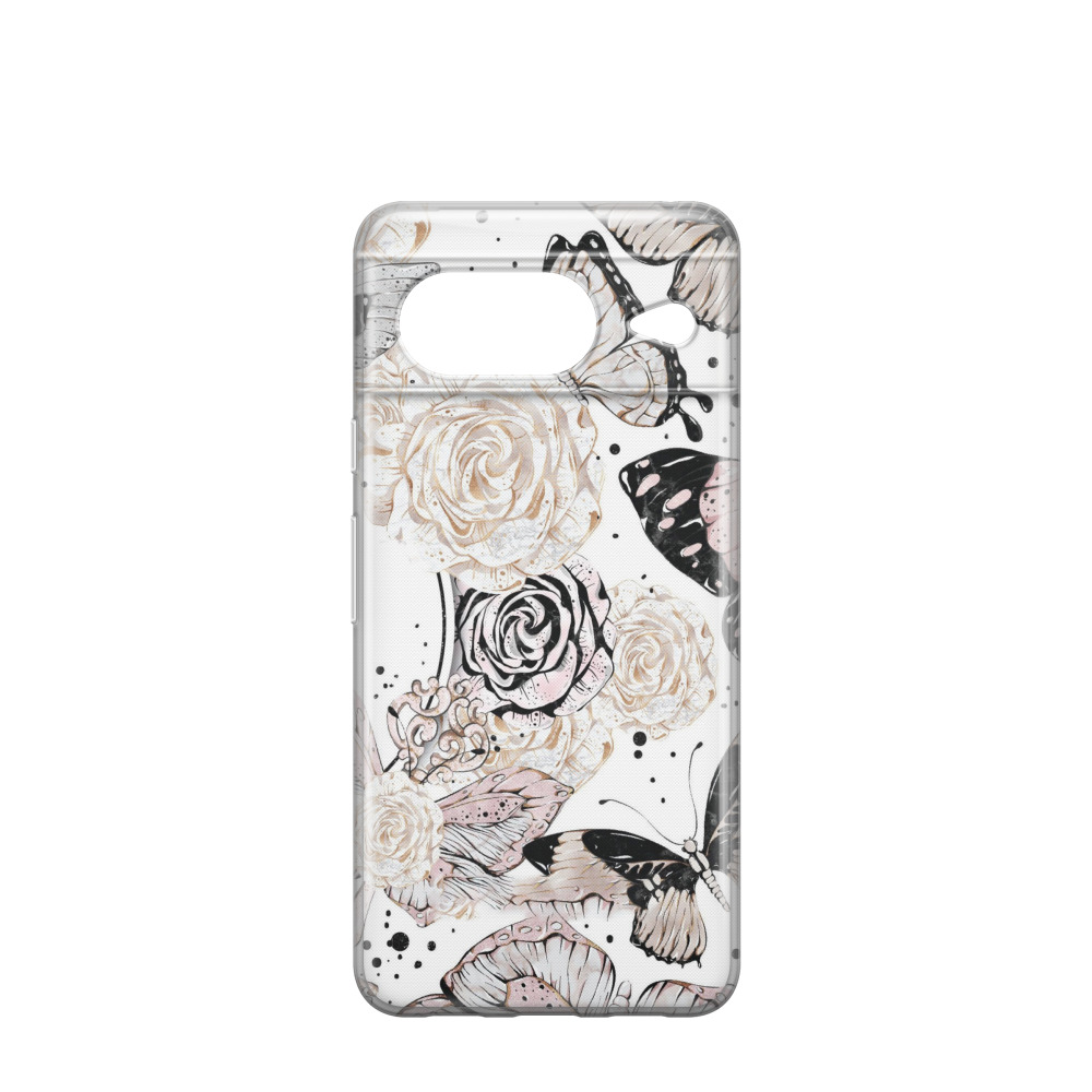 Google Pixel 8 Gummi Hülle Blumen Schmetterling - Weiss