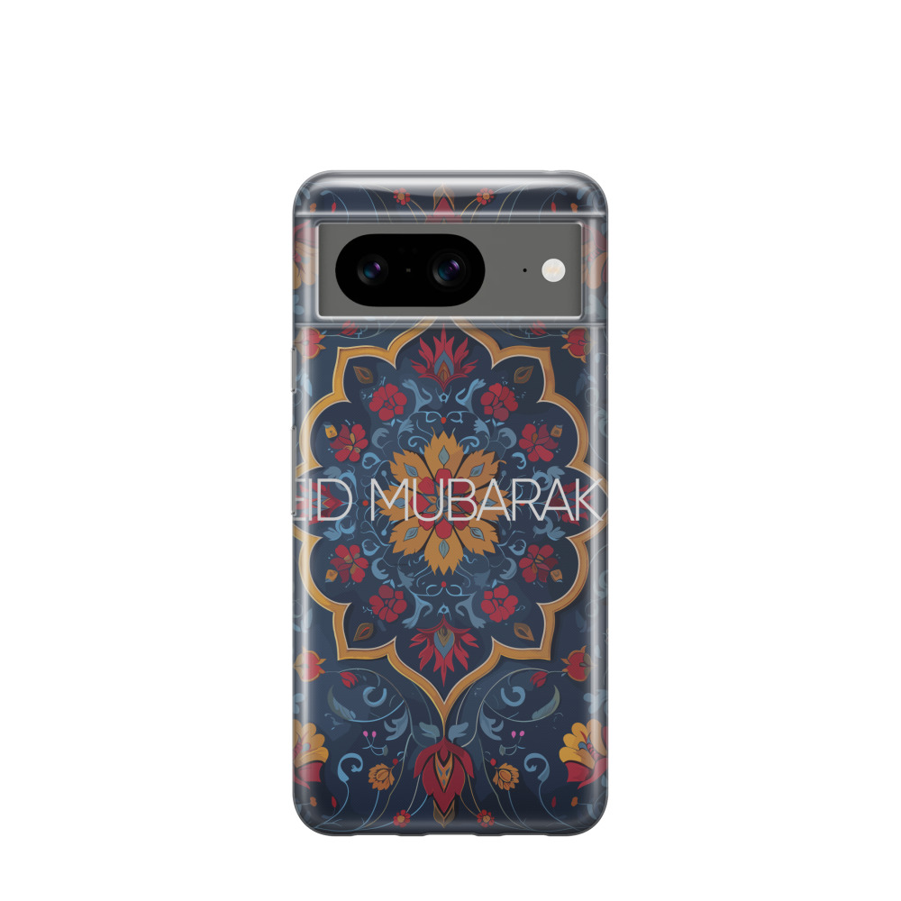 Google Pixel 8 Gummi Hülle Ramadan Mandala 1 - Blau / Gelb / Rot