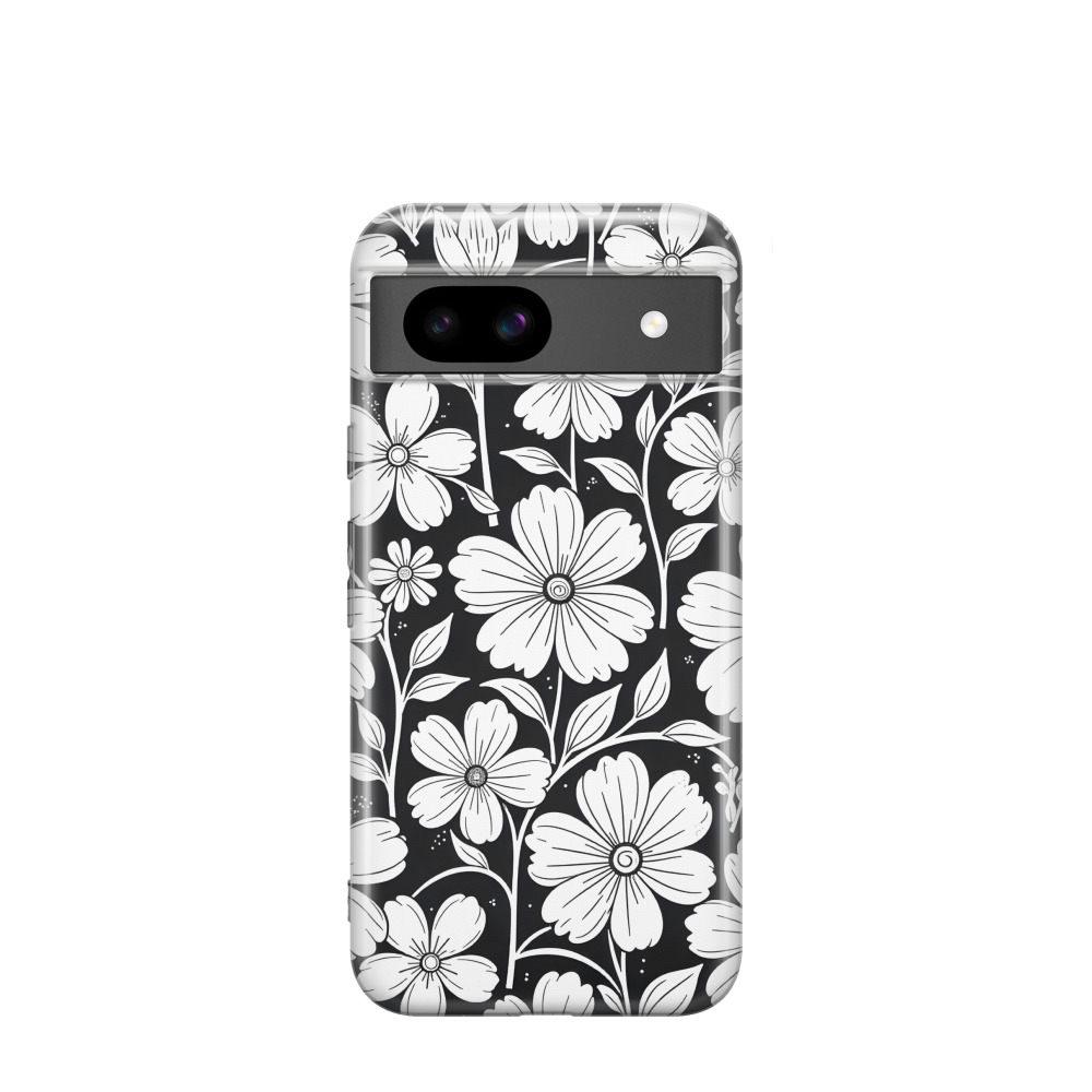 Google Pixel 8a Gummi Hülle Schwarz-Weiss-Blüten - Schwarz