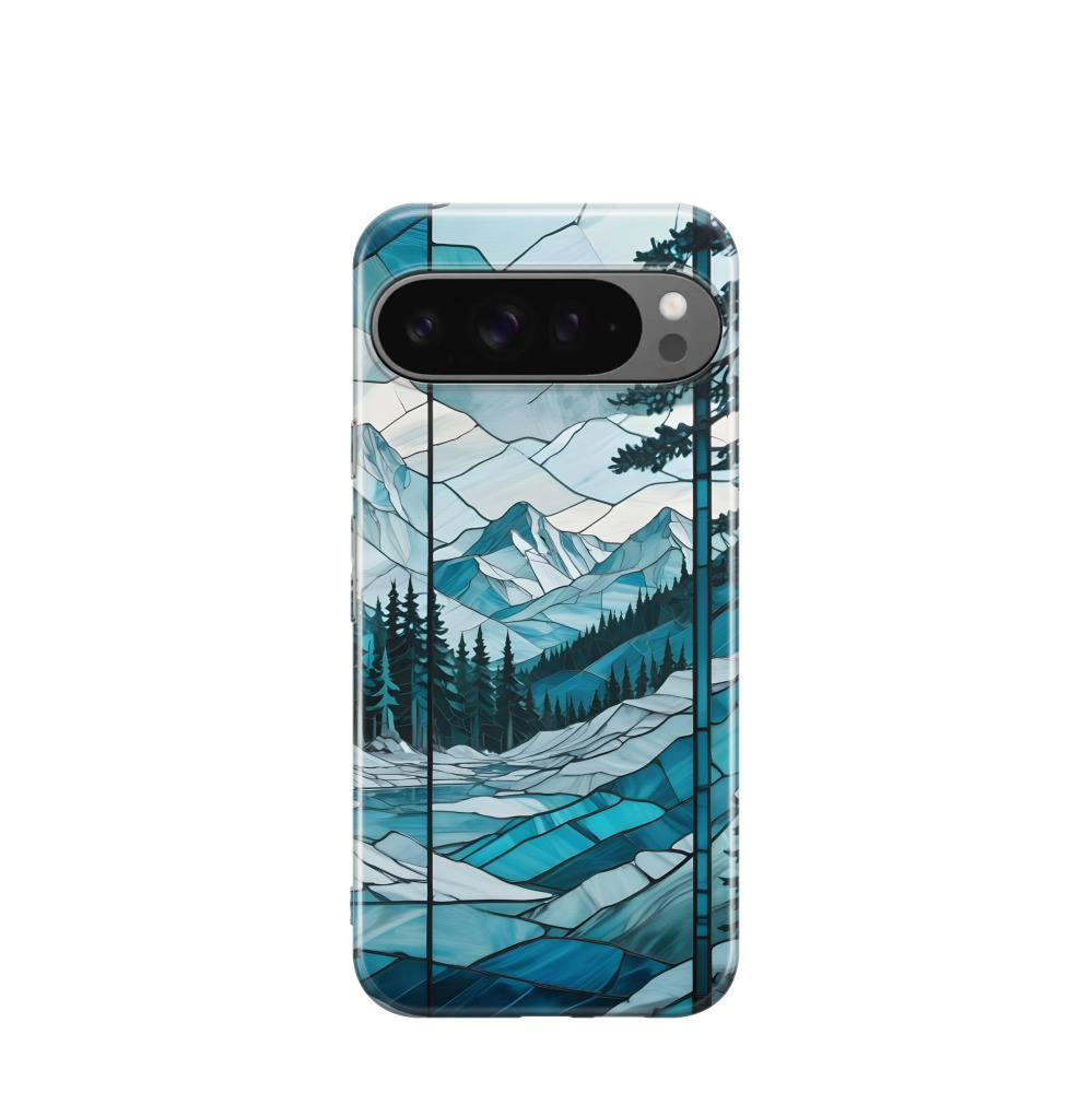 Google Pixel 9 Gummi Hülle Glasiger Winterwald - Blau