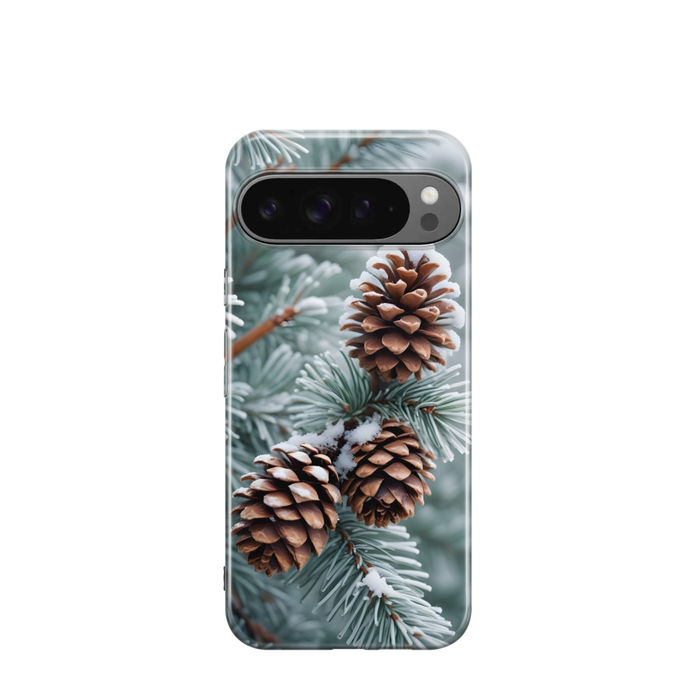 Google Pixel 9 Pro Gummi Hülle Frostige Kiefernträume - Braun