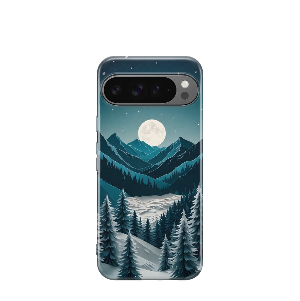 Google Pixel 9 Pro Gummi Hülle Winternacht in den Bergen - Schwarz