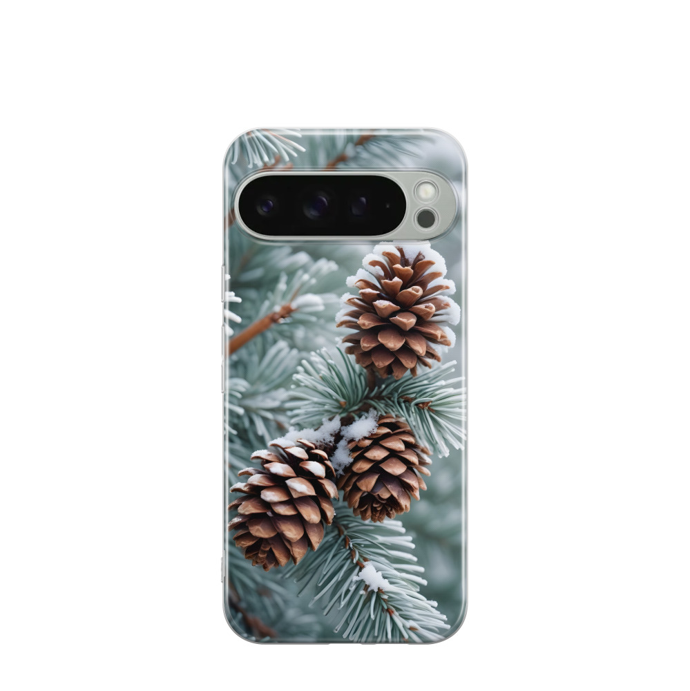 Google Pixel 9 Pro XL Gummi Hülle Frostige Kiefernträume - Braun