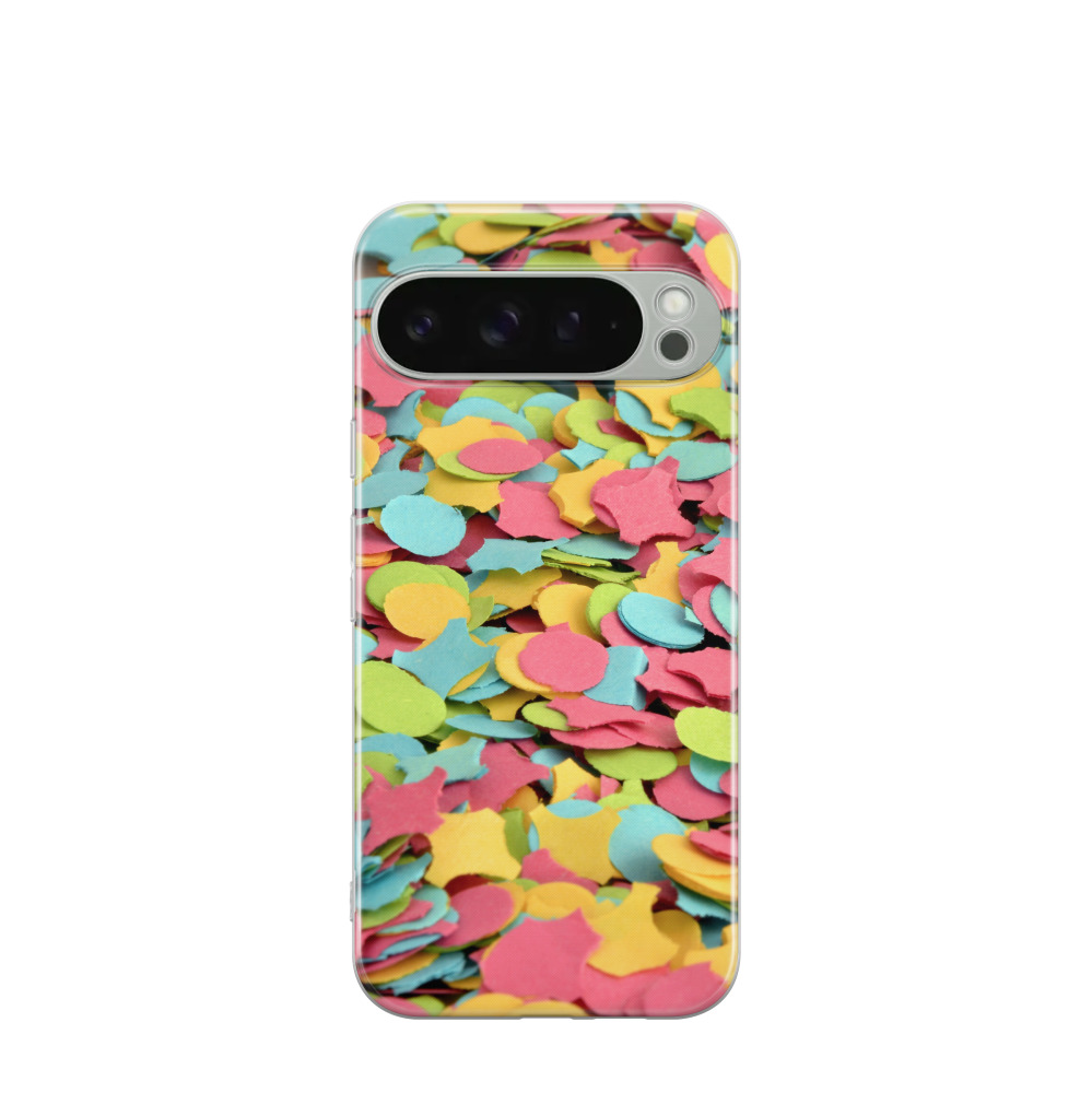 Google Pixel 9 Pro XL Gummi Hülle Konfettipracht - Blau / Gelb / Rot