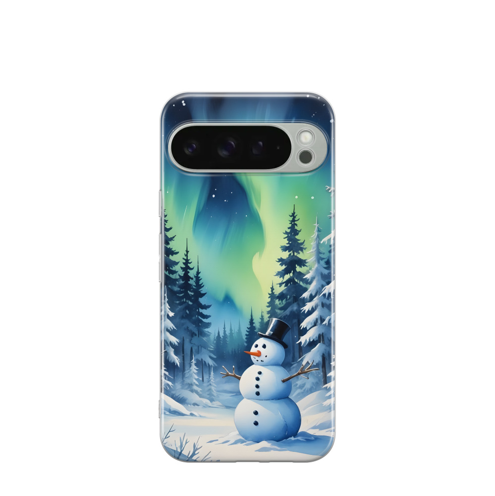 Google Pixel 9 Pro XL Gummi Hülle Nordlicht Schneemann - Türkis