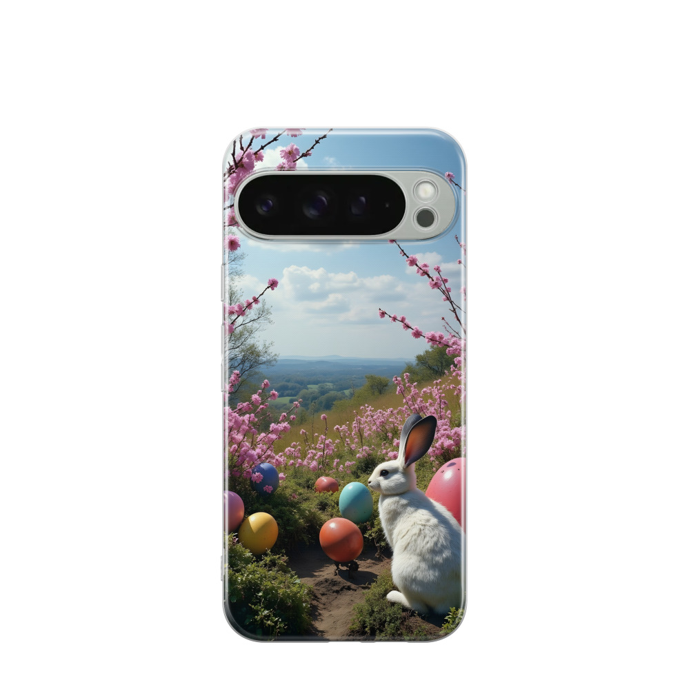 Google Pixel 9 Pro XL Gummi Hülle Osterhase im Frühling - Blau
