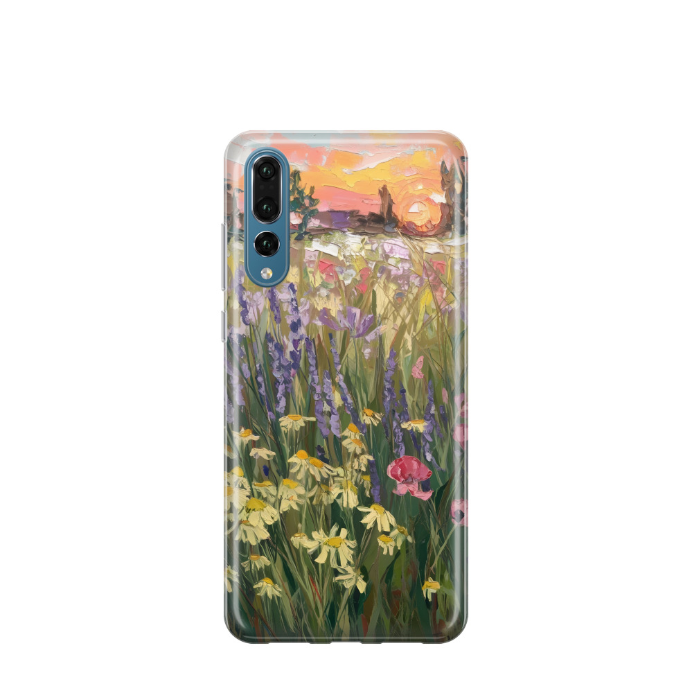 Huawei P20 Pro Gummi Hülle Abendsonne über der Wiese - Grün