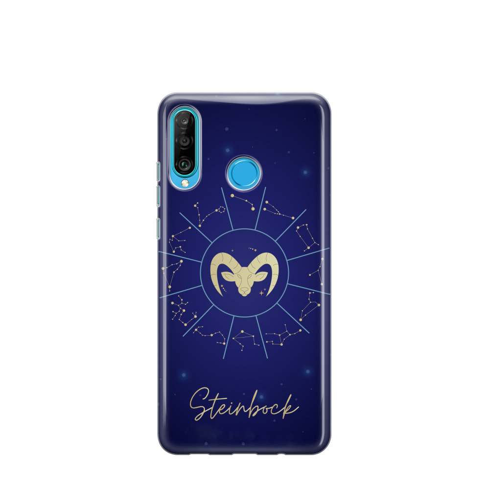 Huawei P30 Lite Gummi Hülle Steinbock 3 - Blau