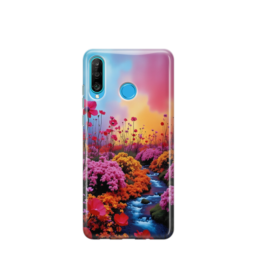Huawei P30 Lite New Edition Gummi Hülle Ein Fluss aus Licht und Blüten - Versch. Farben