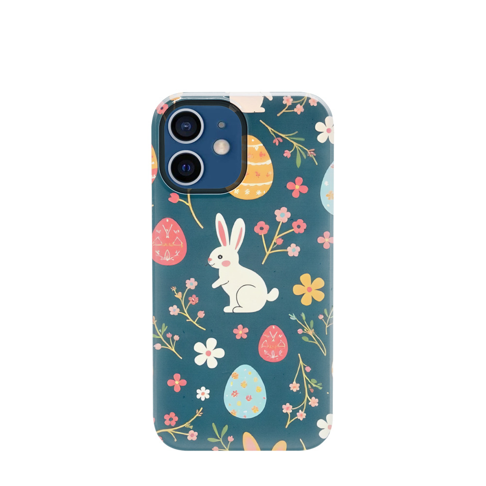 iPhone 12 Mini Hybrid (Kunststoff / Gummi) Hülle Häschenparty - Blau