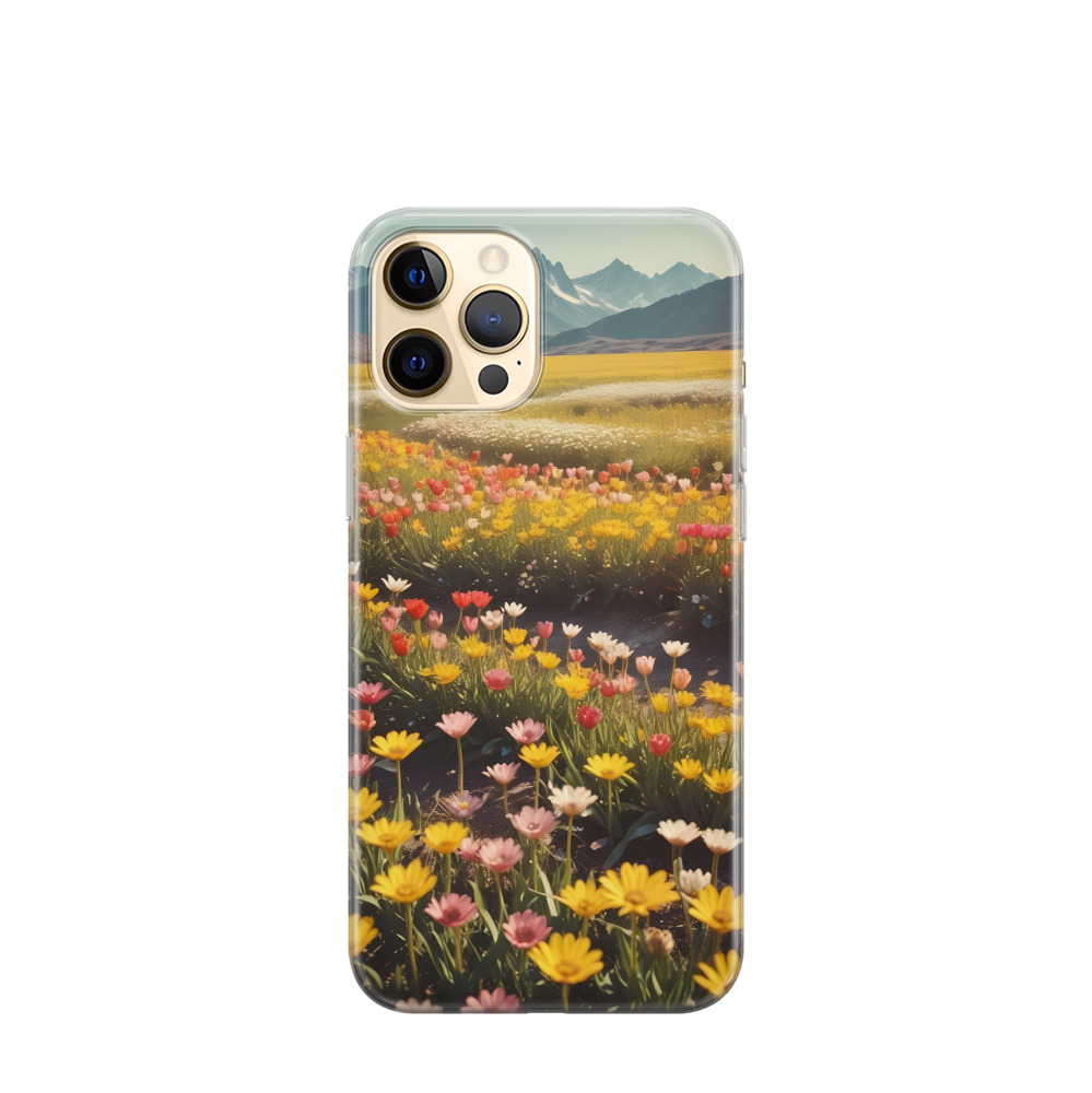 iPhone 12 Pro Max Gummi Hülle Bergfrühling in voller Blüte - Gelb