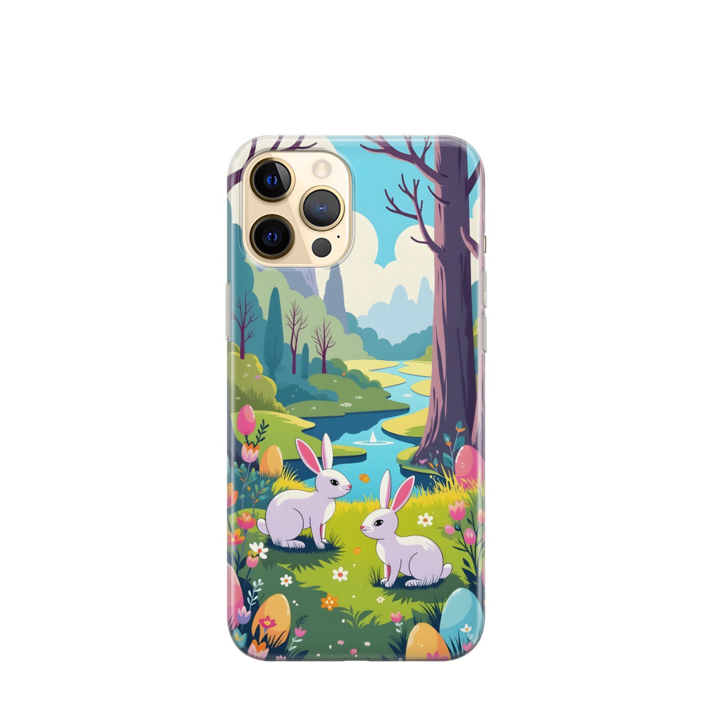 iPhone 12 Pro Max Gummi Hülle Blütenpracht und Osterträume - Blau / Gelb / Rot