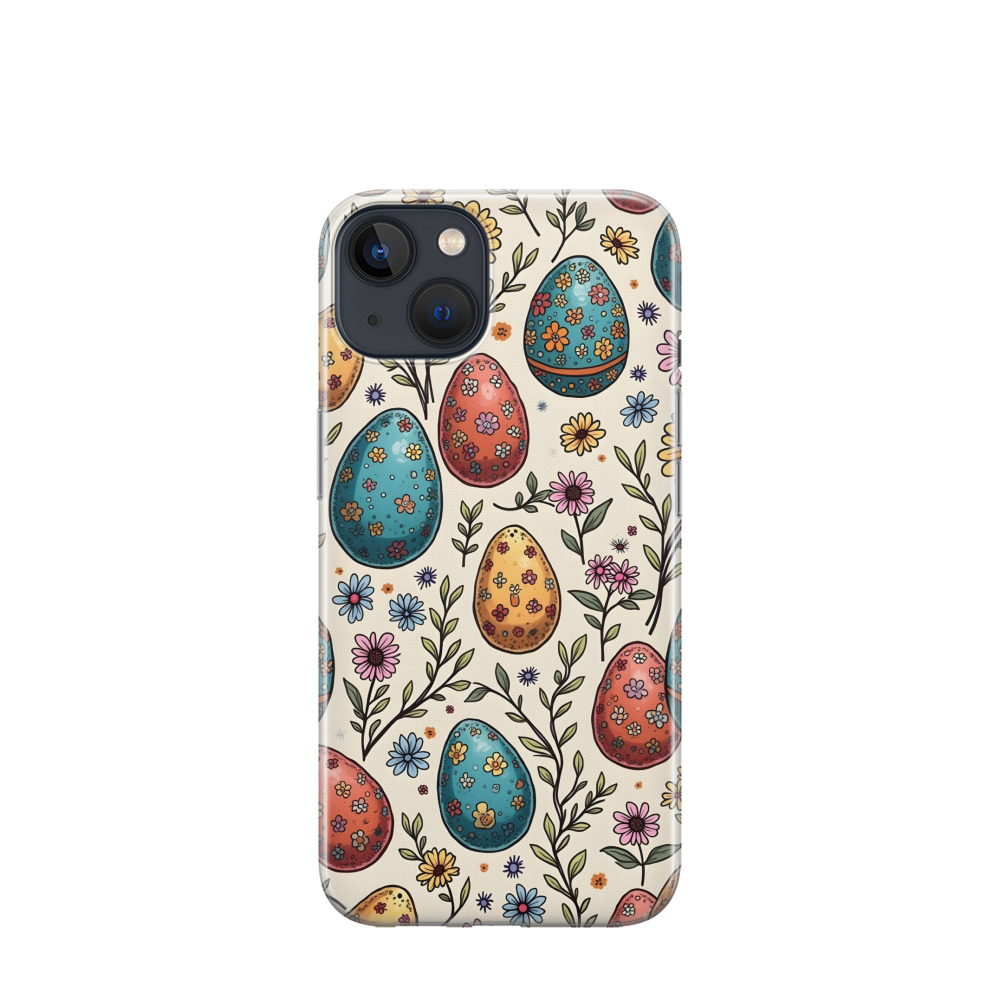 iPhone 13 Gummi Hülle Blumeneier - Blau / Gelb / Rot