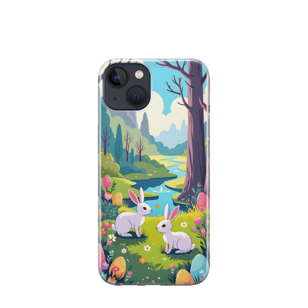 iPhone 13 Gummi Hülle Blütenpracht und Osterträume - Blau / Gelb / Rot