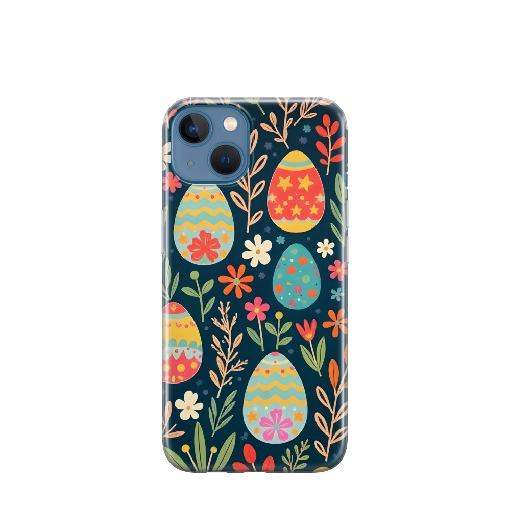 iPhone 13 Mini Gummi Hülle Blütenzauber zu Ostern - Blau