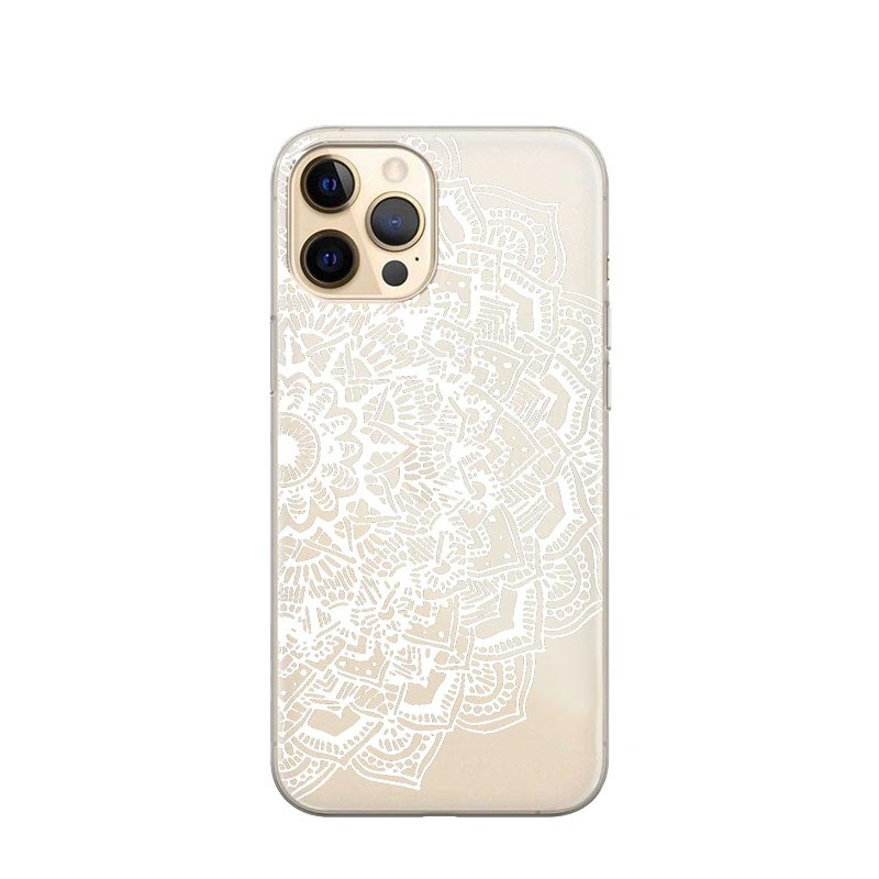 iPhone 13 Pro Max Gummi Case Hülle Ultra Thin Henna Mandala - Transparent / Weiss