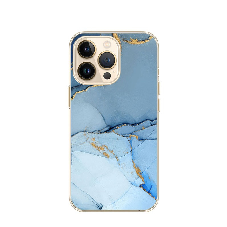 iPhone 13 Pro Max Gummi Case Hülle Ultra Thin Marble Marmor - Blau / Gold