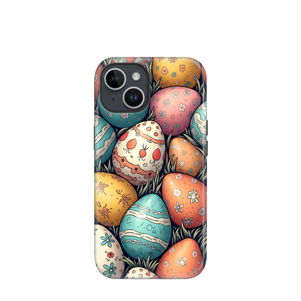 iPhone 14 Hybrid (Kunststoff / Gummi) Hülle Bunte Osterpracht - Blau / Gelb / Rot