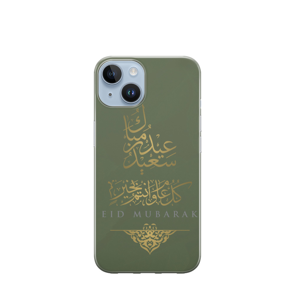 iPhone 14 Plus Gummi Hülle Eid Mubarak 3 - Olive