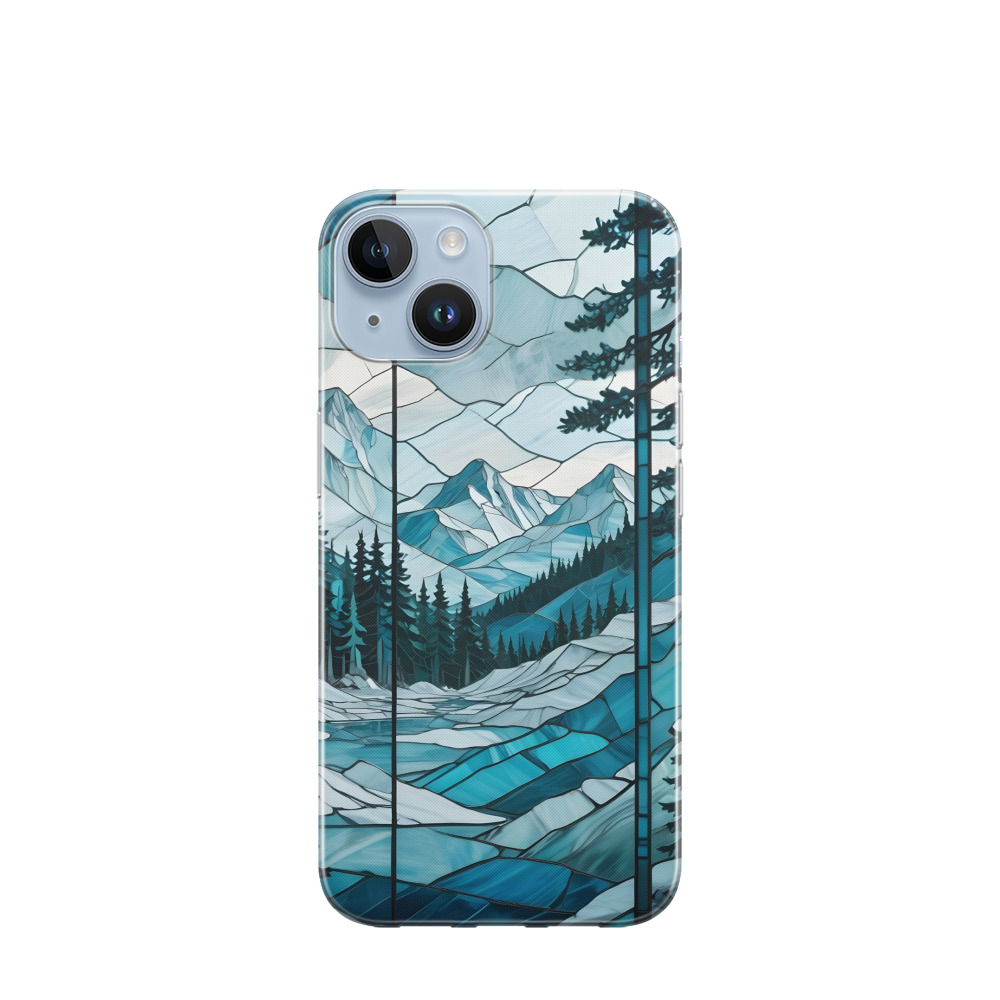 iPhone 14 Plus Gummi Hülle Glasiger Winterwald - Blau