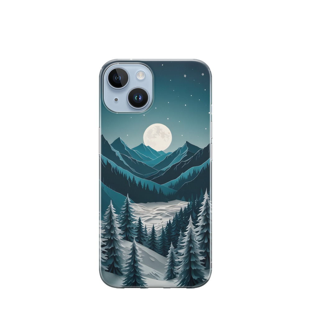iPhone 14 Plus Gummi Hülle Winternacht in den Bergen - Schwarz