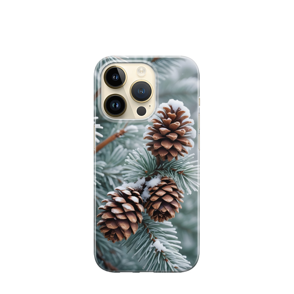 iPhone 14 Pro Gummi Hülle Frostige Kiefernträume - Braun