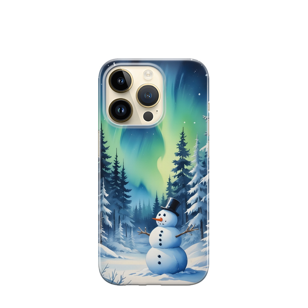 iPhone 14 Pro Gummi Hülle Nordlicht Schneemann - Türkis